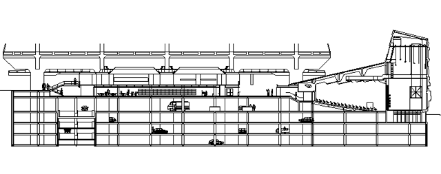 salão de atos e um palco para atividades cívicas, e um café, junto