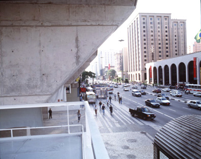 O projeto baseia-se na retirada de porções da laje do térreo superior junto à calçada de pedestres da Avenida Paulista e sobre o foyer; tais rasgos propiciam, no primeiro caso, acessibilidade visual e física às vitrines da galeria e da biblioteca, e constituem o generoso espaço de chegada ao prédio; junto ao teatro, conferem ao seu foyer proporções mais adequadas, principalmente em relação ao seu pé-direito, além de melhor iluminação, arejamento e maior beleza. No espaço altamente qualificado assim obtido, as instalações para cada uma das atividades definidas pelo programa, construídas em aço, são concebidas de forma a gozarem de grande autonomia plástica, aliada a uma funcionalidade bela. No térreo superior, a galeria de arte possui longa vitrine para a Avenida Paulista e para o mural de Burle Marx; no térreo inferior a biblioteca possui também sua vitrine e nos fundos é arrematada pelo café, cujo balcão estende-se ao longo do foyer; ao longo da torre de elevadores, tem-se no térreo superior o balcão da recepção e no térreo inferior, a chegada dos elevadores, uma vitrine de livros da biblioteca. Do outro lado da biblioteca, um painel dedicado à história do teatro brasileiro alonga-se pela área reservada à fila dos ingressos, que por sua vez é ladeada pela rua interna de ligação entre a Avenida Paulista e a Alameda Santos. Apesar da diferença de cotas existente entre estas duas vias propiciarem diferenças de pé-direito que evitam o enclausuramento, a iluminação deste espaço é precária. O serviço de protocolo localiza-se no 1º subsolo e é acessado diretamente pelos veículos de seus usuários. Os novos espaços de caráter cívico e social, de natureza tão nebulosa quanto as intenções de seus requisitores, são agrupados em uma ponte que estende-se por toda a lateral do prédio, avançando para além deste em direção a avenida, para a qual se abre, e ao mural do teatro. Em todo caso, a sua maior utilidade é a de construir, no térreo superior, um pé-direito mais baixo junto às portas dos elevadores, em consonância com o espaço entre estas e o balcão da recepção. Especial atenção deve ser dispensada às vitrines e painéis da biblioteca, mencionadas anteriormente, pois desenvolvem-se também em espessura, abrigando instalações diversas e conformando janelas, cuja profundidade possibilita seu uso como mostruário e estabelece uma adequada relação entre os ambientes que comunicam visualmente. Estes elementos da construção revelam-se, deste modo, especialmente engenhosos e bonitos. Extremamente instigante neste sentido, a separação entre a recepção do edifício e a galeria de arte é, ao mesmo tempo, a sua entrada. O espectador caminha entre aquelas que seriam as duas faces da parede, através de estruturas que, pelas relações entre a sua largura e sua altura, e pelo seu caráter metálico, chamou-se de containers. Tais containers, juntamente com os dois imensos domus, são os elementos organizadores do espaço da galeria de arte. O espaço da biblioteca, por sua vez, é organizado de uma forma mais rígida, ditada sobrertudo pela funcionalidade, resultando nas longas bancadas e na sucessão de estantes de livros. As mesas de leitura, assim como as bancadas da recepção e do café, entre outras peças de mobiliário, foram desenhadas pelos arquitetos e produzidas pela mesma indústria que fabricou as peças metálicas da obra. O projeto consegue dessa maneira estender-se desde o desenho do objeto até a arquitetura urbana, constituindo mesmo um modelo de intervenção para outros edifícios da Avenida Paulista ou de outras regiões da cidade. perspectivas de estudo 'renderizadas':1 2 3 4 5 6 |