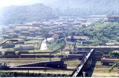 casas da vila e pelas edificações onde funcionava a ferrovia,